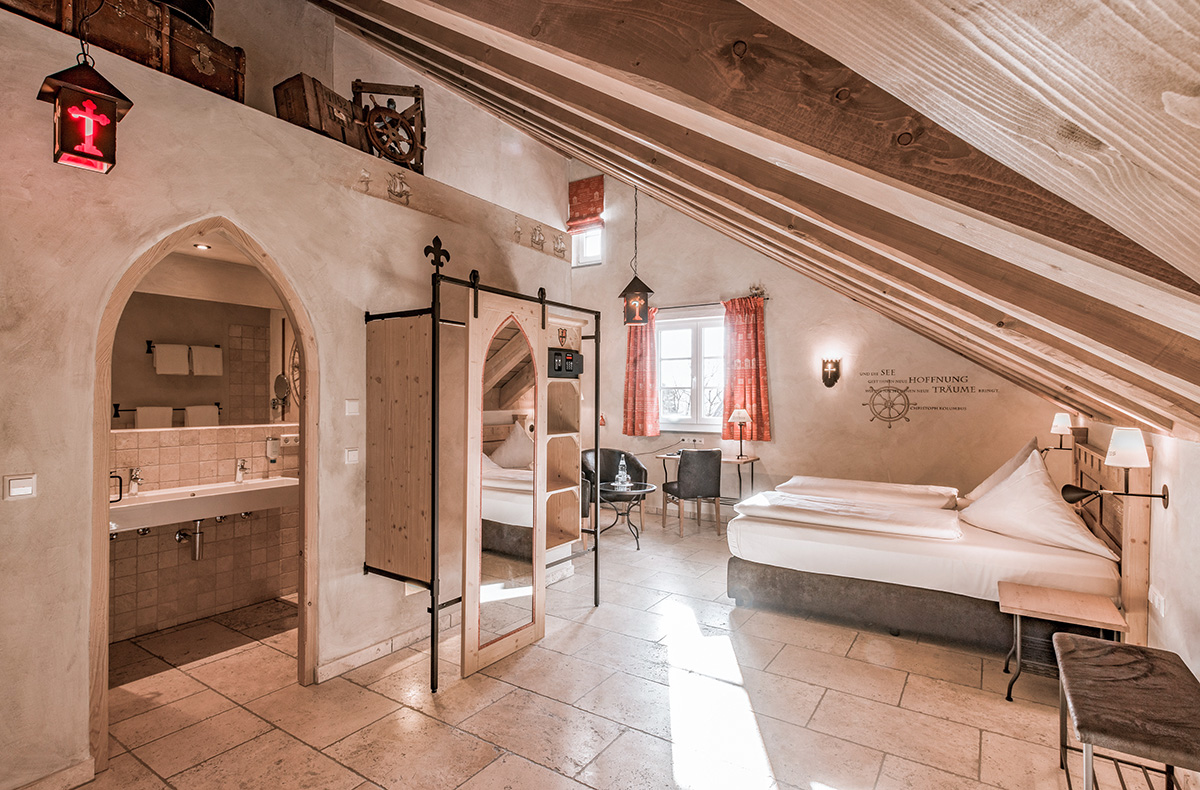 Taucht ein in eine Welt, in der die Zeit stillsteht. Ihr übernachtet in einem der einzigartigen mittelalterlichen Themen-Doppelzimmer mit modernstem Komfort.