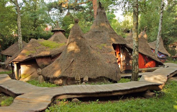 Die Übernachtung ist aber noch lange nicht alles, was Euer außergewöhnliches Hotel für Euch vorbereitet hat. Darüber hinaus erwartet Euch ein sagenhaftes Mitternachtsabenteuer, das so manche Überraschung bereithält. Auch der Spaß kommt bei diesem Erlebnis nicht zu kurz. An die Übernachtungsanlage angeschlossen ist ein Abenteuerfreizeitpark, der sich mit dem Volk beschäftigt, das einst in genau dieser Umgebung gelebt hat – dem Volk von Turisede. Euer außergewöhnliches Hotel versorgt Euch mit Parktickets für den An- und Abreisetag. So könnt Ihr in aller Ruhe eintauchen in die Welt der Turisede und alles über deren Geschichte, Kunst und Kultur lernen.