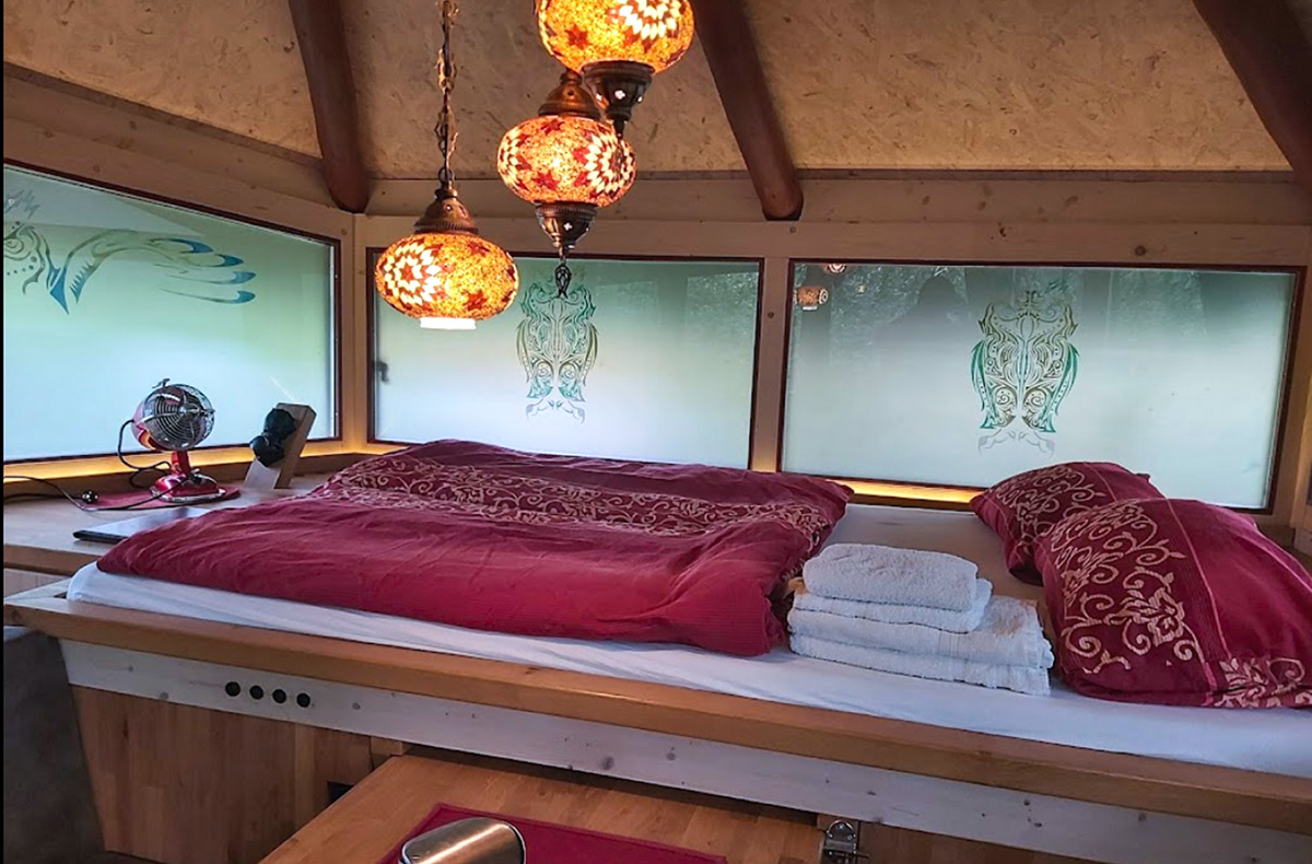 Das Eulennest-Baumhaus bietet Euch eine gemütliche Unterkunft in luftiger Höhe. Von der Terrasse aus habt Ihr einen wunderschönen Ausblick auf die Natur. Die Einrichtung des Baumhauses ist rustikal und einzigartig zugleich. Nun könnt Ihr den Tag in der Schäferwagensauna ausklingen lassen.