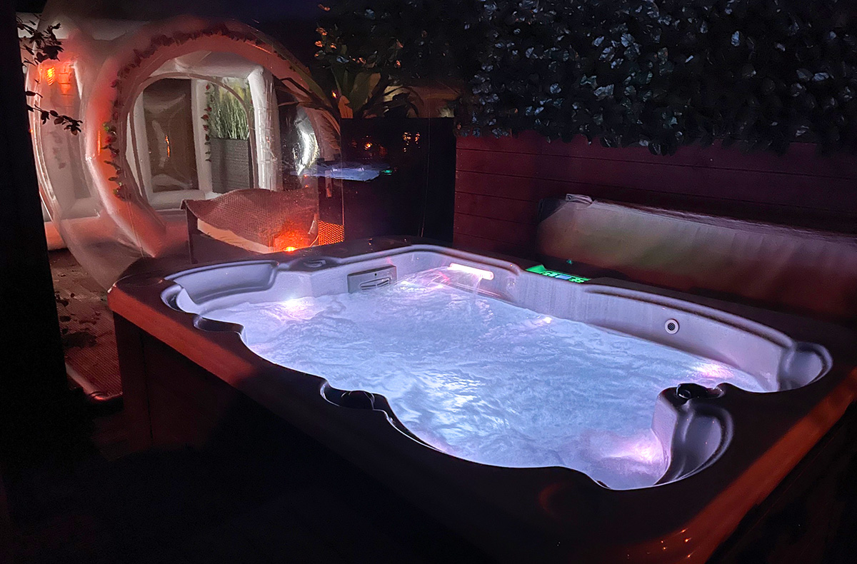 Doch Euer Bubble Hotel wartet noch mit einigen weiteren Highlights auf. So ist Eurer Bubble ein privater Wellnessbereich angeschlossen, in dem Ihr Euch ganz allein und ungestört entspannen könnt. Genießt Eure Zweisamkeit im beheizten und überdachten Außenwhirlpool mit sagenhaftem Ausblick über die umliegenden Landschaften. Sowohl die Bubble als auch Eure Terrasse sind selbstverständlich sichtgeschützt. Wenn Euch dennoch zwischendurch der Sinn nach etwas mehr Privatsphäre steht, könnt Ihr auch jederzeit auf Euer eigenes Apartment mit Schlafzimmer, Küche und Bad zurückgreifen.