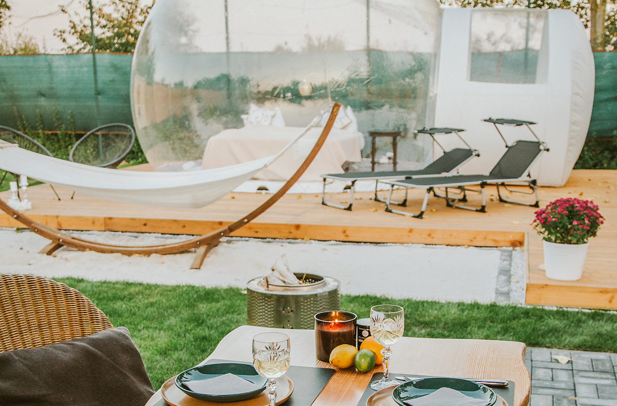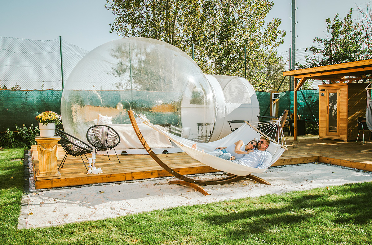 - 1 Übernachtung im Bubble Tent im privaten Wellness-Garten