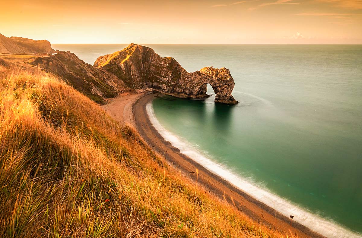Fahrt Richtung Grafschaft Cornwall mit Halt in Lyme Regis inklusive Spaziergang zum Durdle Door, der natürlichen Felsbrücke aus Kalkstein, die Du schon in so manchen Film gesehen hast
