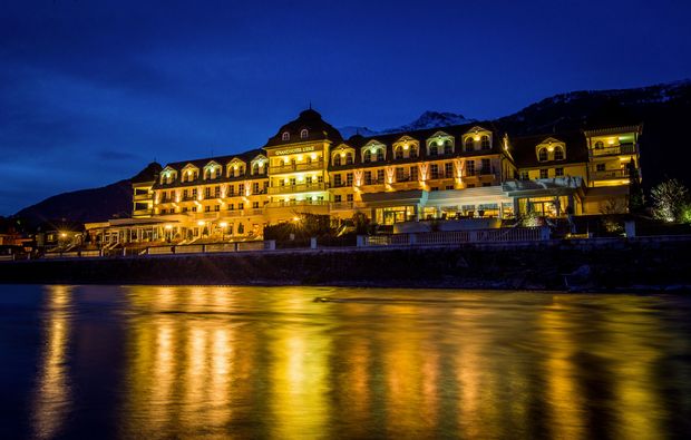 Nur 10 Autominuten von einem der schönsten Golfplätze Österreichs entfernt werdet Ihr beim Golfen und Schlemmen in Lienz für drei Tage im einzigen 5-Sterne-Hotel in Osttirol unterkommen. Genießt die herrliche Landschaft, erfreut Euch am luxuriösen Ambiente, lasst es Euch auf höchstem Niveau schmecken, entspannt Euch im 1.400 Quadratmeter großen Wellnessbereich im Grandhotel in Lienz und tobt Euch auf der 27-Loch-Golfanlage aus. Golfen und Schlemmen in Lienz bedeutet Luxus-Urlaub in seiner schönsten Form!