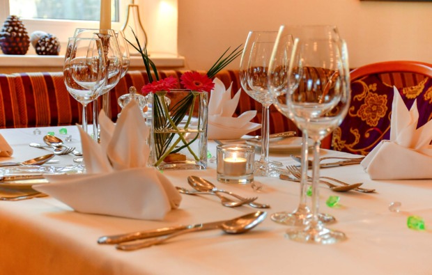 Zur Stärkung wirst Du am Abend mit einem delikaten 4-Gänge-Schlemmer-Menü verwöhnt. Dazu gibt es eine Flasche Pikkolo für Dich und Deinen Liebsten. Genieße einen feinen Gaumenschmaus und lass Dich von den Spezialitäten des Restaurants verzaubern.