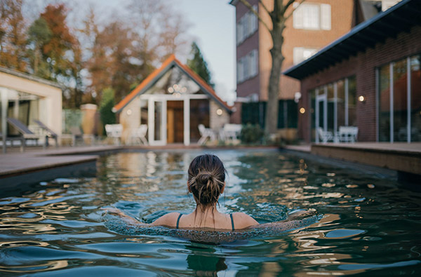 • Freie Nutzung des Wellnessbereichs mit Finnischer Sauna, Sprudelbad, Dampfbad, Indoorpool, Außennaturpool und Naturbadeteich