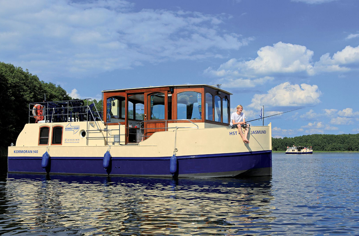 Die Kormoran 940 ist ein komfortables Hausboot, das alles bietet, was Du Dir wünschen kannst. Und wer darf mit auf Deine Reise gehen? Es ist perfekt für kleine Familien und Paare geeignet und bietet insgesamt Platz für bis zu fünf Personen. Die Kormoran 940 besteht aus fünf Betten, einer Kabine sowie einem Badezimmer mit Dusche und WC. Hier hast Du stets fließendes Warm- und Kaltwasser. Während Du mit dem Blick auf das Wasser in der Küche zaubern kannst, steht von Geschirr bis Koch- und Küchenzubehör alles zur Verfügung. Gasherd, Kühlschrank, Backofen und das richtige Licht sind hier integriert, sodass Du Dich wie zu Hause fühlen kannst.