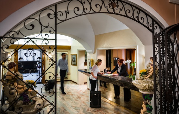 Schon bei eurer Anreise werdet ihr begeistert sein. Denn es steht eine Flasche Tessiner Merlot auf eurem Zimmer bereit. Stosst bei einem Gläschen Rotwein auf zwei wundervolle Tage in Locarno an und startet so in ein wunderbares Wochenende. Da Locarno direkt am Lago Maggiore liegt, bietet sich ein kleiner Spaziergang entlang des Sees an. Ein kleiner Tipp: Sucht euch bei Sonnenuntergang ein nettes Plätzchen auf der Terrasse eines der vielen Restaurants und geniesst bei einem romantischen Abendessen die wunderbare Abendstimmung am See. Wenn es dunkel geworden ist, sieht man die vielen Lichter über das Wasser tanzen.