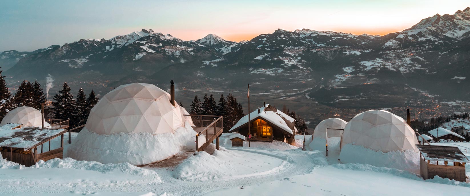 - Iglu-Übernachtung in Adelboden, Schweiz: Die Iglus sind alle individuell gestaltet. Nach einem 3-Gänge-Abendessen könnt Ihr Euch in die flauschigen Felle einkuscheln.