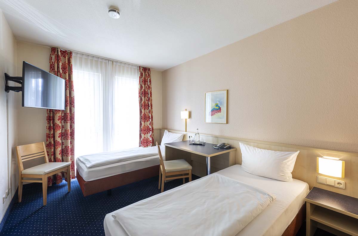 Euer Kurzurlaub in Leipzig heißt Euch mit der Vorfreude auf zwei entspannte Nächte und drei aufregende Tage willkommen. Auf Eurem stilvoll eingerichteten Doppelzimmer könnt Ihr es Euch gemütlich machen. Das helle, lichtdurchflutete Zimmer mit seinen freundlichen Farben verspricht kuschelige Nächte in den weichen Federn und jede Menge Zeit für süße Träume.
