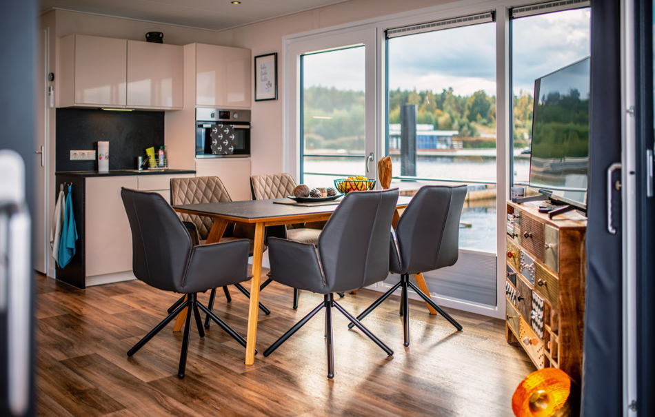 Nach einer ausgiebigen Erfrischung legt Ihr Euch zum Sonnen auf die große Dachterrasse. Bei der Aussicht wird Euch gleich warm ums Herz. Kaum angekommen, wollt Ihr schon gar nicht mehr gehen! Gut, dass Ihr ganze 3 Tage Zeit habt, den größten Binnensee Sachsens zu erkunden. Zahlreiche leckere Restaurants finden sich in nächster Nähe, perfekt um abends auszugehen. Wieder am Hausboot angekommen, macht Ihr es Euch im stilvollen Wohn- und Schlafbereich gemütlich. Auf diesen wunderschönen Urlaub stoßt Ihr genußvoll an!