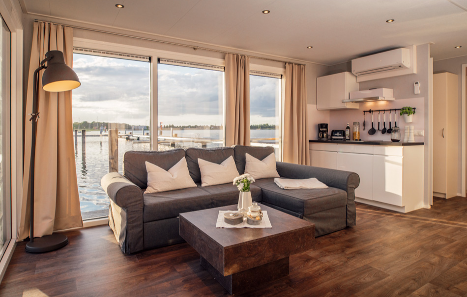 Eure Unterkunft ist wahrlich ein schwimmendes Haus. Fest verankert an einem Steg auf dem Gräbendorfer See in Brandenburg befindet sich Euer moderner und stilvoll eingerichteter Rückzugsort. Mit der großen Terrasse und Dachterrasse ist das Hausboot der perfekte Ort, um die Seele baumeln zu lassen. Legt Eure Sachen ab und holt Euch die wohlverdiente Erfrischung!