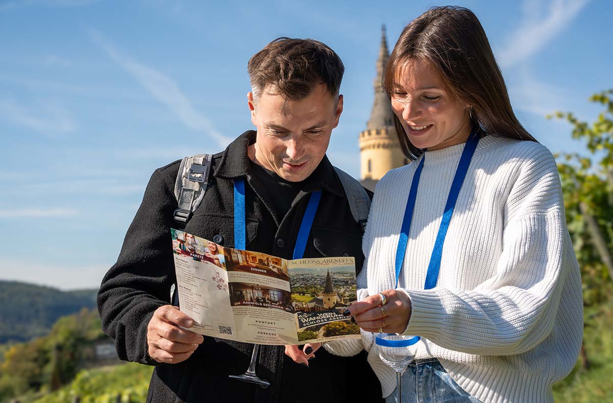 Ein Aufenthalt im Schloss Arenfels ist wie eine Reise in eine andere Welt – stilvoll, romantisch und voller Genuss. Inmitten historischer Mauern schläfst Du im liebevoll gestalteten Doppelzimmer und fühlst Dich wie ein echter Schlossgast. Am Morgen wartet ein duftendes Frühstück auf Dich, das den Tag geschmackvoll einläutet. Mit einer Wanderkarte in der Hand erkundest Du die grüne Umgebung, spazierst durch Weinreben und genießt weite Ausblicke über das malerische Rheintal. Ein besonderes Highlight ist das Weinpicknick im Freien: Ausgestattet mit allem, was Du brauchst, machst Du es Dir mitten im Grünen gemütlich. Lass Dich von der Magie einer Übernachtung im Schloss Arenfels verzaubern – dieses Erlebnis bleibt im Herzen.