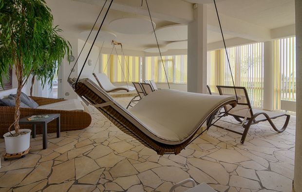 Am Nachmittag könnt Ihr Euch eine kleine Wellness-Ruhepause gönnen und ein paar Bahnen im Hotelpool ziehen, in der Sauna relaxen und Euch dann in weiche Bademäntel kuscheln.