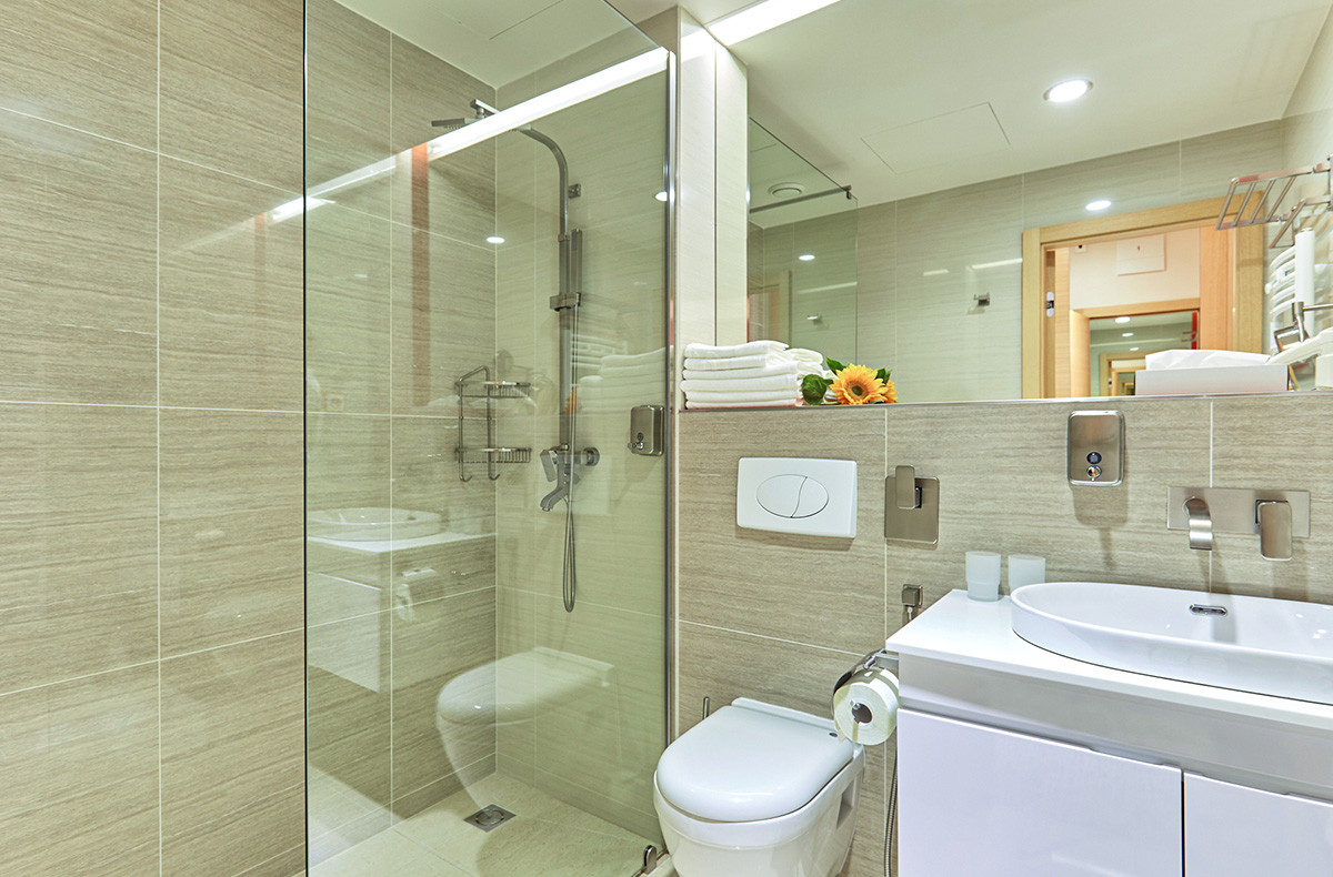 Wird gestellt: Hotelkosmetik, Bademantel, Badeslipper