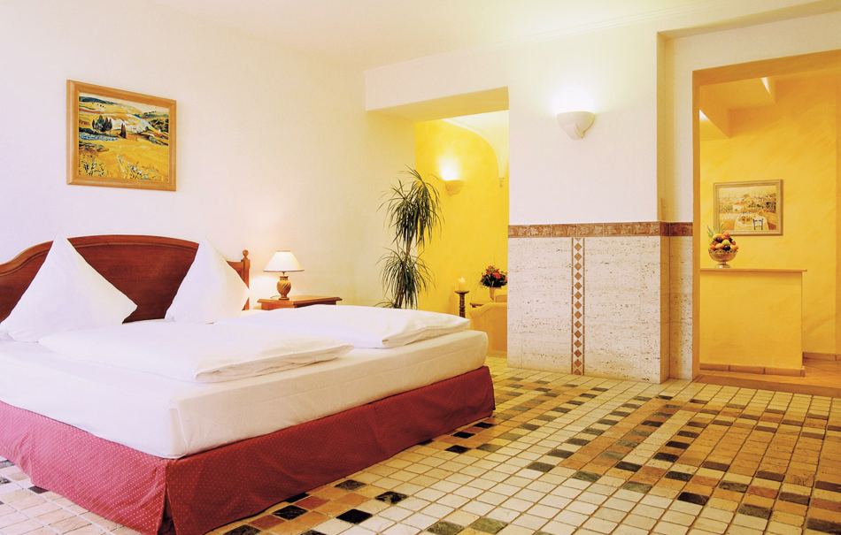 In einen bezaubernden und großen Park eingebettet erwartet Euch Euer Hotel mit Weinbergen und Wasseranlagen. Eure Deluxe-Suite bezaubert mit herrschaftlichem Ambiente und vor allem durch den wunderschönen Ausblick auf die malerische Umgebung. Genießt Eure Oase der Ruhe.