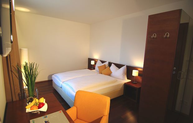 Ihr werdet bei Eurer Ankunft in Steyr mit einem fruchtigen Begrüßungsdrink und einem Vitamingruß freundlich empfangen und könnt Euch im Hotel sofort wohlfühlen. Auf Eurem Doppelzimmer „Steyrer Au“ erwartet Euch eine romantische Dekoration, die Euch sinnliche Stunden der Liebe verspricht. Von Eurem Balkon aus genießt Ihr eine wunderschöne Aussicht und könnt die frische Luft tief einatmen.