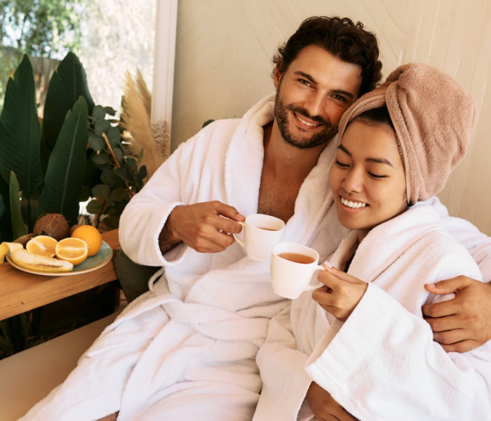 - 1 gepackte Badetasche mit kuscheligen Bademänteln & Badetüchern für die Zeit des Aufenthalts