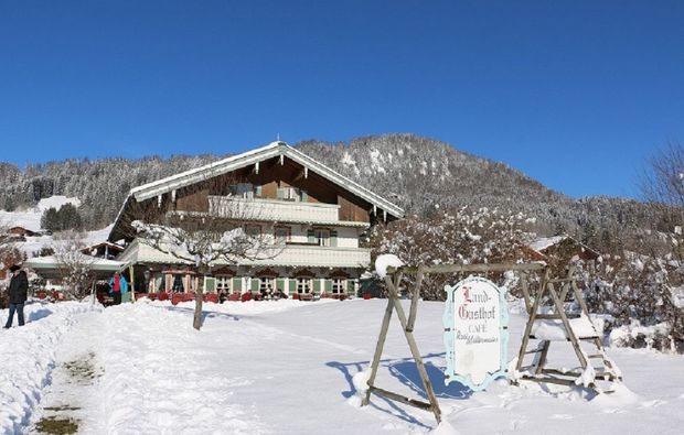Hier könnt Ihr das ganze Jahr über unterschiedlichen Outdoor Aktivitäten nachgehen. Streift zu Fuß durch die Natur und erkundet die schönsten Plätze der südbayerischen Idylle rund um Reit im Winkl entlang der vielen Wander- und Spazierwege. Im Winter könnt Ihr Euch auf der Langlaufloipe, welche direkt am Hotel vorbeiführt, auspowern oder Euch im Snowpark austoben. Auch in der charmanten Ortschaft, die sich wenige Gehminuten von Eurem Hotel befindet, gibt es viel Kultur zu entdecken und herrliche alpenländische Bauten und Häuser zu bestaunen. Außerdem erhaltet Ihr bei Eurem Romantikwochenende mit der inkludierten InclusivCard Reit im Winkl vielen Vergünstigungen und gratis Eintritten für viele Sehenswürdigkeiten.