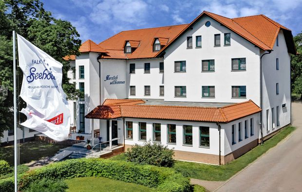Bei Ihrer Ankunft im Falk Seehotel werden Sie freundlich begrüßt. Traumhaft direkt am Plauer See gelegen, lädt Sie das familiär geführte Vier-Sterne-Hotel zum Entspannen und Wohlfühlen ein. Der See verzaubert die Gäste zu jeder Jahreszeit und verführt sie zu romantischen Spaziergängen. Die hauseigene Wellnessoase sorgt mit Finnischer Sauna und Dampfdusche, Beautybereich, Solarium und Fitnessraum für Ihr Wohlbefinden. Aber auch kulinarisch können Sie sich richtig verwöhnen lassen: Mit regionalen Spezialitäten, Fisch aus heimischen Gewässern und Wild aus eigener Jagd sorgt das Küchenteam für Ihr leibliches Wohl und zaubert ein exquisites 4-Gänge-Menü für Sie. Im Restaurant Seeblick mit Wintergarten und großer Seeterrasse lässt sich zu den Köstlichkeiten auf dem Teller auch die herrliche Aussicht genießen. Lassen Sie den gemütlichen Abend mit einem guten Glas Wein ausklingen und nehmen Sie sich Zeit zum Genießen und Träumen.