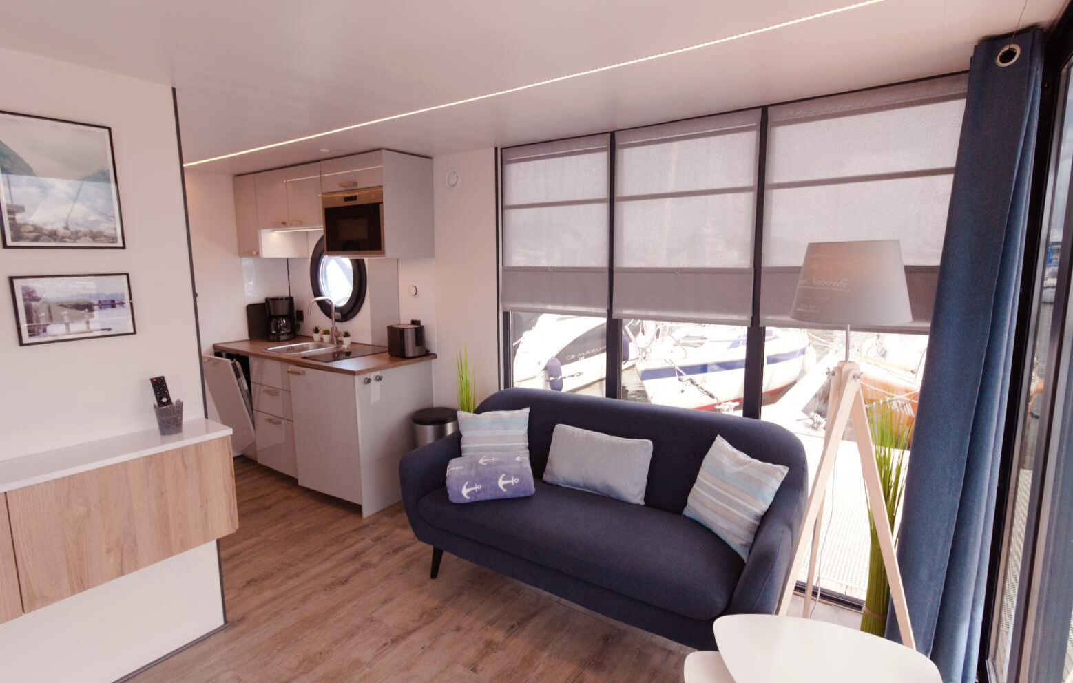 Euer Hausboot erstreckt sich über 50 lichtdurchflutete und offen geschnittene Quadratmeter, die Euch ein kuscheliges Zuhause auf Zeit zu werden – ob mit Kind und Kegel oder ein paar Freunden. Alles, was Ihr braucht, steht Euch bereit: eine vollausgestattete Küchenzeile mit hübscher Essecke, ein kuscheliger Lounge-Bereich mit Ausziehsofa und Meerblick durch bodentiefe Fenster und zwei gemütliche Kojen, also separate Schlafzimmer. Zwei Sonnenterrassen, davon eine auf dem Dach, und eine Sauna bieten Entspannung der Extraklasse!