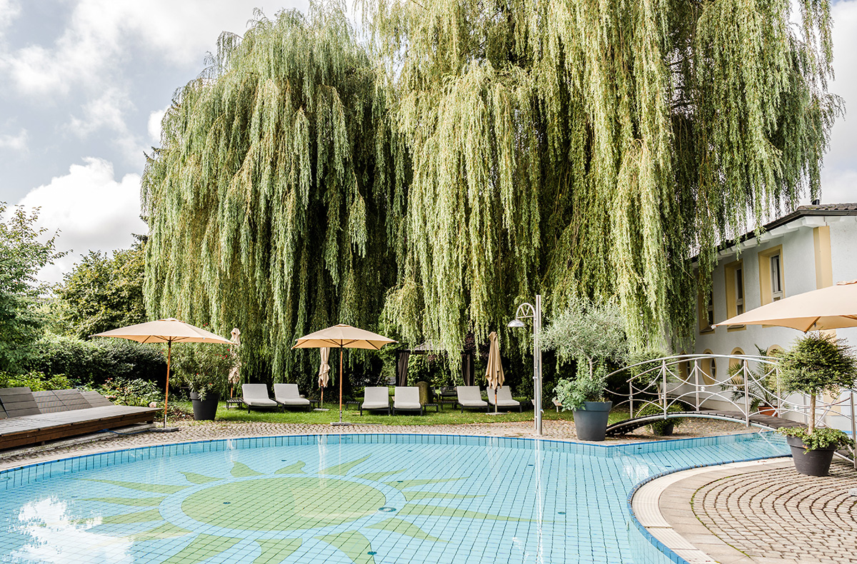 - Nutzung des 1000 qm großen Wellnessbereichs Garten Spa mit finnischer Sauna, Dampfbad, Garten-Kräutersauna, Infrarotsauna, Fitnessraum, Kneippbecken, Ruheraum, Indoor-Pool, Outdoor-Pool (von Mai – September)