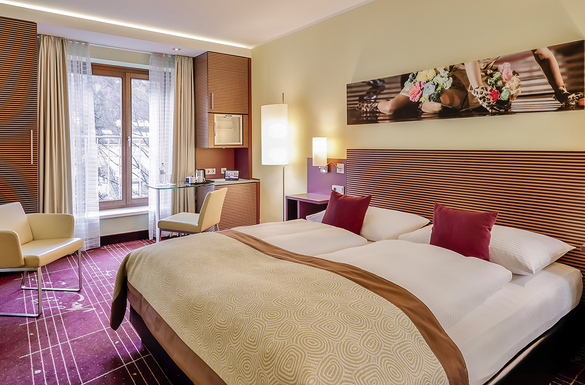 Ihr übernachtet in einem gemütlichen Doppelzimmer im Dorint City-Hotel Salzburg. Das 4-Sterne-Hotel glänzt nicht nur mit der hervorragenden Lage, sondern auch mit seinen Leistungen. Freut Euch auf ein reichhaltiges Frühstücksbuffet am Morgen sowie die Nutzung des Sauna- und Fitness-Bereichs. Nur wenige Gehminuten von Eurem Hotel befindet sich eine sehr gute Bus-Anbindung ins Zentrum.