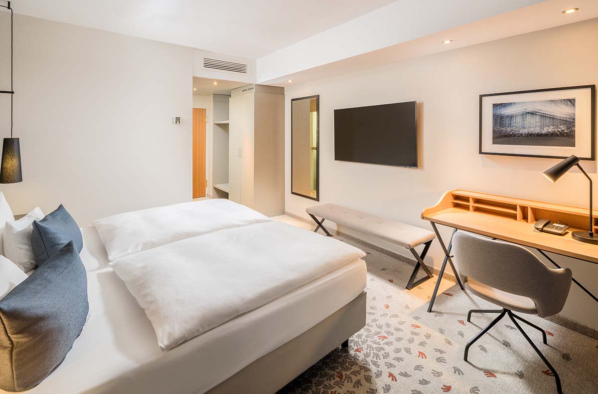 Ein Kurzurlaub ist nur so gut wie das Hotel. Und das ist beim Städtetrip in Bielefeld hervorragend! Hier verbringt Ihr eine herrliche Nacht im Vier-Sterne Superior-Hotel mitten im Zentrum. Der perfekte Ausgangspunkt für Eure Unternehmungen. Natürlich müsst Ihr nicht auf den Komfort verzichten. Kulinarische Delikatessen gibt es im hauseigenen Restaurant, köstliche Drinks in der dazugehörigen Bar. Wenn Du gerne Sport machst, findest Du außerdem einen perfekt ausgestatteten Fitnessraum.