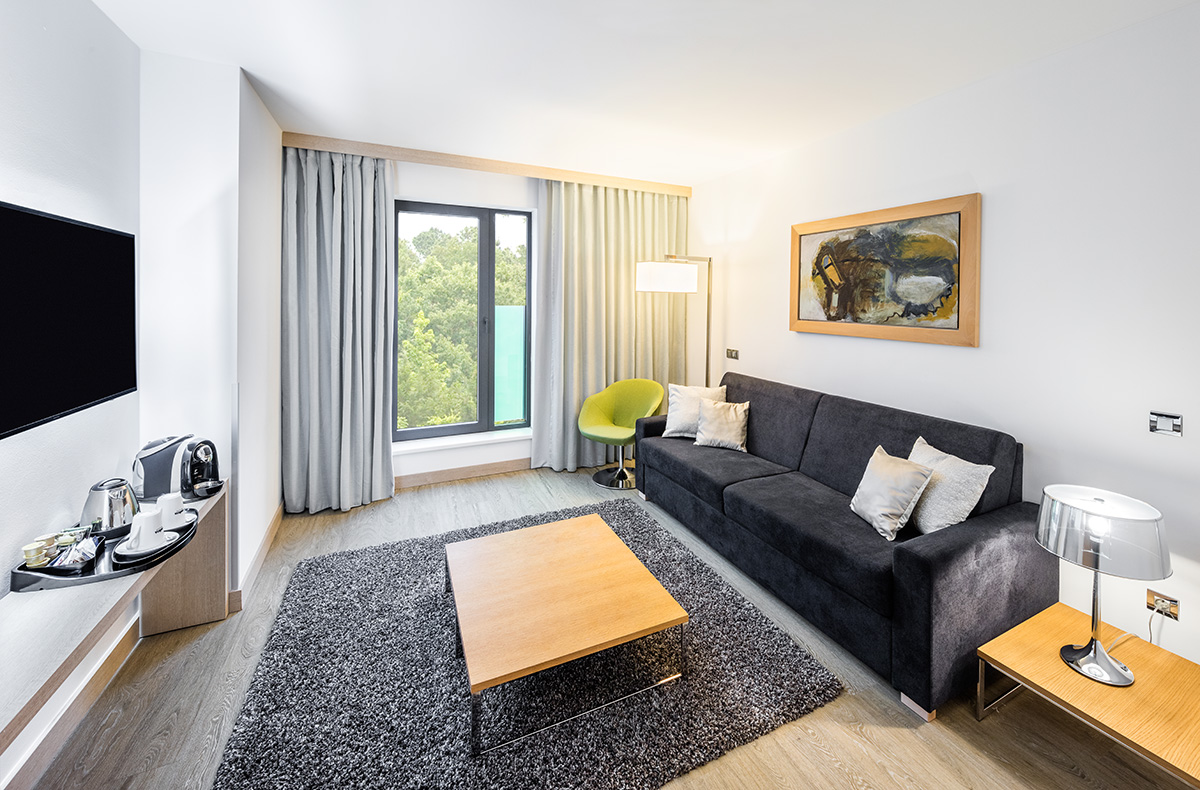 134 Zimmer (2 barrierefrei), Bar, Fitnessbereich, Sauna, Minimarkt, Geldautomat, Lift, 24/7 Rezeption, WLAN im gesamten Hotel