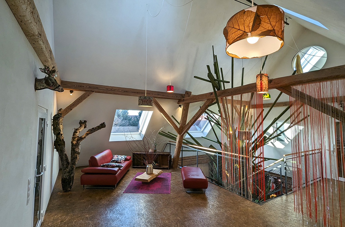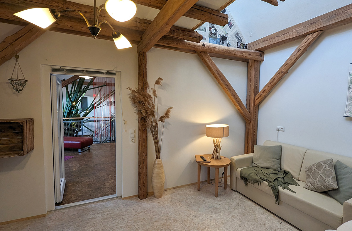 Ihr sucht eine außergewöhnliche Unterkunft für entspannte Tage zu Zweit? Dann seid Ihr hier genau richtig. In Geusfeld erwartet euch eine zum Tiny House umgebaute Scheune. Die wunderschönen Holzbalken und die stilvolle Einrichtung sorgen für eine unvergleichliche Wohlfühlatmosphäre. Das Highlight des Tiny Houses ist das gemütliche Bett unterm Sternenhimmel. Nur ein XXL-Fenster trennt Euch von den funkelnden Lichtern. Also genießt den Ausblick, bevor Ihr zufrieden ins Land der Träume gleitet.
