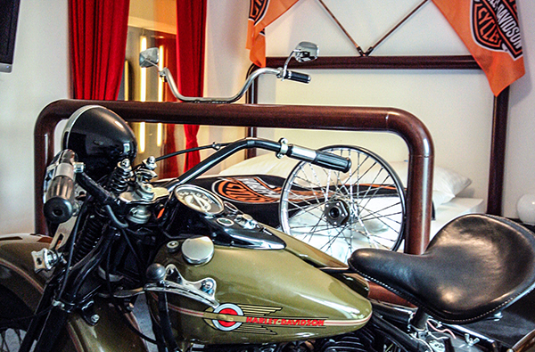 Nichts ist beeindruckender als eine Harley-Davidson zu fahren. Wenn reife Männer ihre Jugendträume wahr werden lassen, hat das nicht selten mit der Faszination eines besonderen Zweirades zu tun. Die Harley gilt heute als Synonym für Freiheit und Easy-Rider. Um Deinem Bike auch in der Nacht näher zu sein, fährst Du einfach mit Deinem Motorrad in Dein Hotelzimmer.