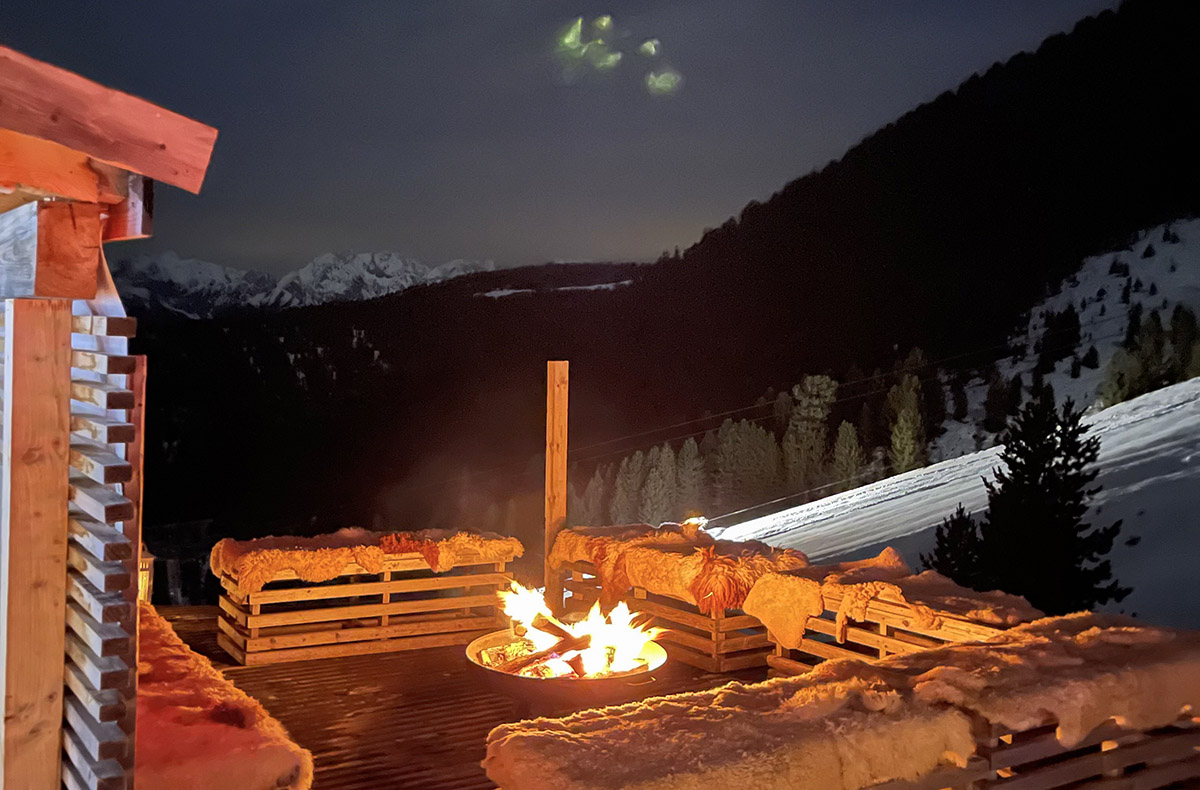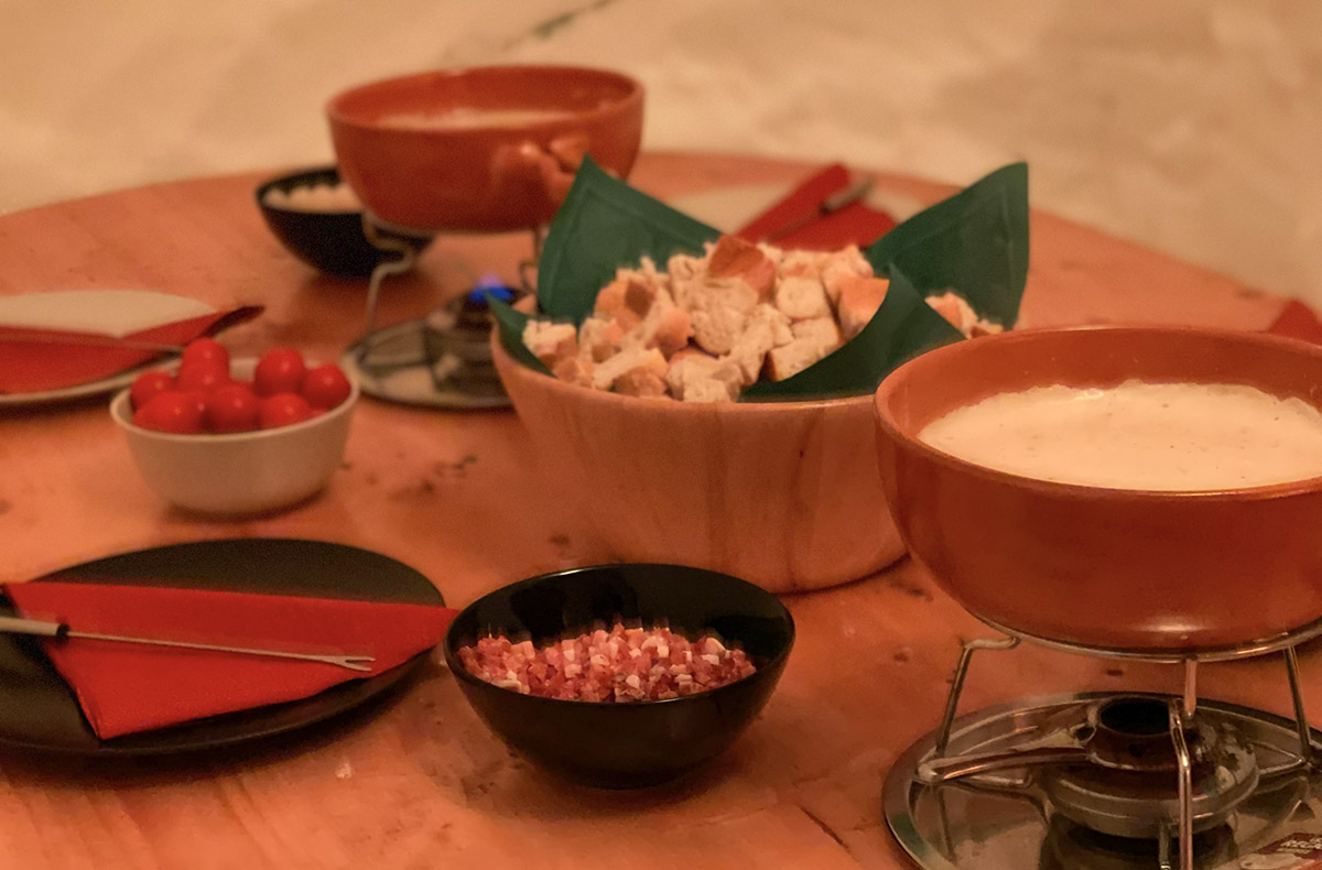Der funkelnde Sternenhimmel wird zum Dach Eurer Träume, während das Knistern des Schnees eindrucksvolle Erinnerungen schafft. Am Morgen verwöhnt Euch ein reichhaltiges Frühstück. Abends genießt Ihr ein köstliches Käsefondue mit prickelndem Prosecco und einer feinen kalten Platte.