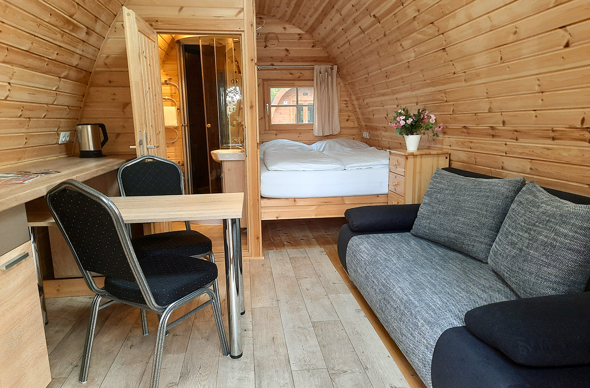 Der Camping Pod im Campotel Nord-Ostsee bietet eine wohlige Atmosphäre mit heimeliger Heizung und einem gemütlichen Bad. Entspannt auf der Terrasse mit einem eindrucksvollen Blick auf den Teich und startet jeden Morgen perfekt mit einem liebevoll zusammengestellten Frühstückskörbchen in den Tag.