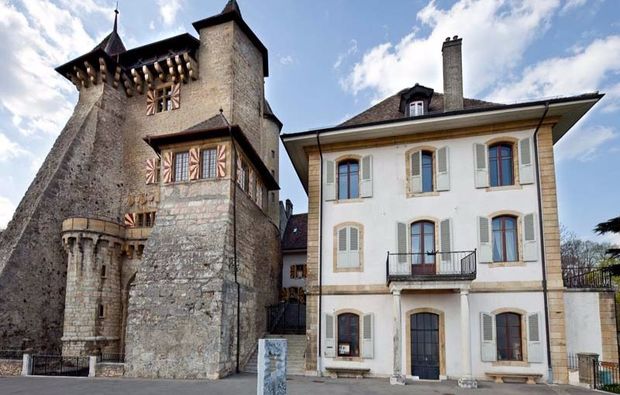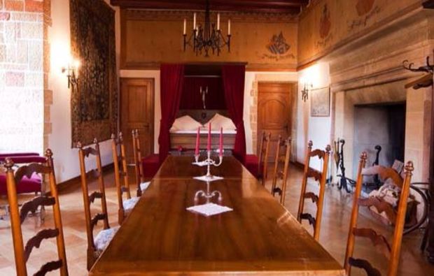 La chambre "Charles le Téméraire" se situe dans le donjon millénaire du Chà¢teau de Vaumarcus. Elle offre un cadre romantique aux amoureux des vieilles pierres et de la nature. Elle dispose une climatisation, une télévision, un téléphone et un minibar. Dans la salle de bains, vous trouverez une baignoire, un sèche-cheveux et un miroir séparé.
