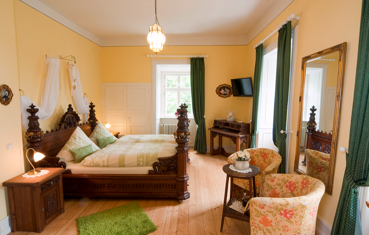 Mit einem Schlummertrunk werdet Ihr auf Eure kuschelige Nachtruhe in Eurem idyllischen Schlosszimmer eingestimmt - Lasst es knistern.
