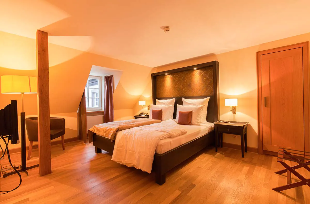 Fernab von Euren 4 Wänden thront der ehemalige Stammsitz des Grafen Waldeck über dem traumhaften Edersee und der märchenhaften Berglandschaft. Ein Panorama, das Euch in Eurem Doppelzimmer regelrecht den Atem raubt. Das luxuriös geschmackvolle Interior in dem geschichtsträchtigen Bauwerk bietet Euch eine heimelige Atmosphäre und eine sinnliche Zeit zu zweit. Für mehr Erholung sorgt der burgeigene Wellnessbereich mit Sauna und Dampfbad.