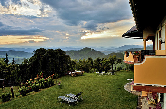 Abseits vom Trubel, inmitten einer grünen Berglandschaft, liegt das rustikale Biolandhaus Arche. Die wunderschöne Aussicht aus dem Bio-Hotel übertrifft alles. Natürliche Materialien und herrlich holzig duftende Zimmer sorgen für den perfekten, natürlichen Rückzugsort.