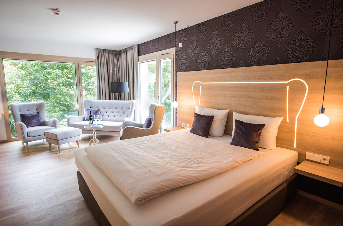 Euer Wellness-Wochenende in Kirchheimbolanden im luxuriösen Parkhotel Schillerhain startet mit einem besonderen Highlight: Halbpension ist am Anreisetag inklusive, sodass Ihr Euch nach der Fahrt um nichts mehr zu kümmern braucht. Ihr könnt also nach der Ankunft in Kirchheimbolanden unbesorgt Euer Auto auf dem kostenfreien PKW-Stellplatz abstellen und in Euer persönliches Wellness-Wochenende starten. Die nächsten drei Tage könnt Ihr Euch im gemütlichen Doppelzimmer „Traummanufaktur“ einfach mal so richtig entspannen. Nach jeder der zwei Übernachtungen wartet ein reichhaltiges Frühstücksbuffet auf Euch, an dem Ihr Euch für den anstehenden Tag ausgiebig stärken könnt. Und wer weiß, welche Träume Euch die „Manufaktur“ bescheren wird?