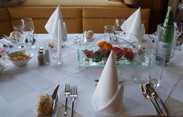 Der Nachmittag steht zu Eurer freien Verfügung. Ihr könnt Euch entweder auf einen Spaziergang in die Stadt Steyr aufmachen, die hoteleigene Felsen-Vital-Oase nutzen oder es Euch in Eurem privaten Reich gemütlich machen. Aber verpasst nicht die süße Überraschung, die Euch das Hotel am Nachmittag zur Verfügung stellt. Vollkommen entspannt treffen Ihr am Abend im Restaurant ein. Dort erwartet Euch ein 4-Gänge Gourmetdinner, das Euch von regionalen Schmankerln bis zur internationalen Küche allerlei Gaumenfreuden bietet. Im romantischen Ambiente lasst Ihr den Abend ausklingen und stoßt nochmals auf einen gelungenen Tag an. Danach genießt Ihr Eure Nachtruhe im luxuriösen Zimmer.