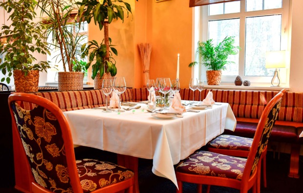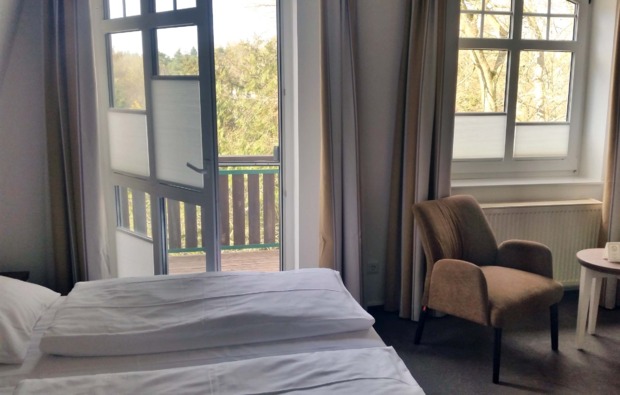 Am Abend kannst Du den Tag gemütlich auf der Gartenterrasse des Restaurants bei einem Glas Wein ausklingen lassen und Dich von den besonderen Kreationen des Küchenchefs verzaubern lassen. Auf Deinem liebevoll eingerichteten Doppelzimmer erwarten Dich romantische Kuschelstunden mit Deinem Liebsten. Genieße den historischen Villencharme des Hotels und gib Dich süßen Träumen hin. Am nächsten Morgen gibt’s dann ein leckeres Genießer-Frühstücksbuffet.