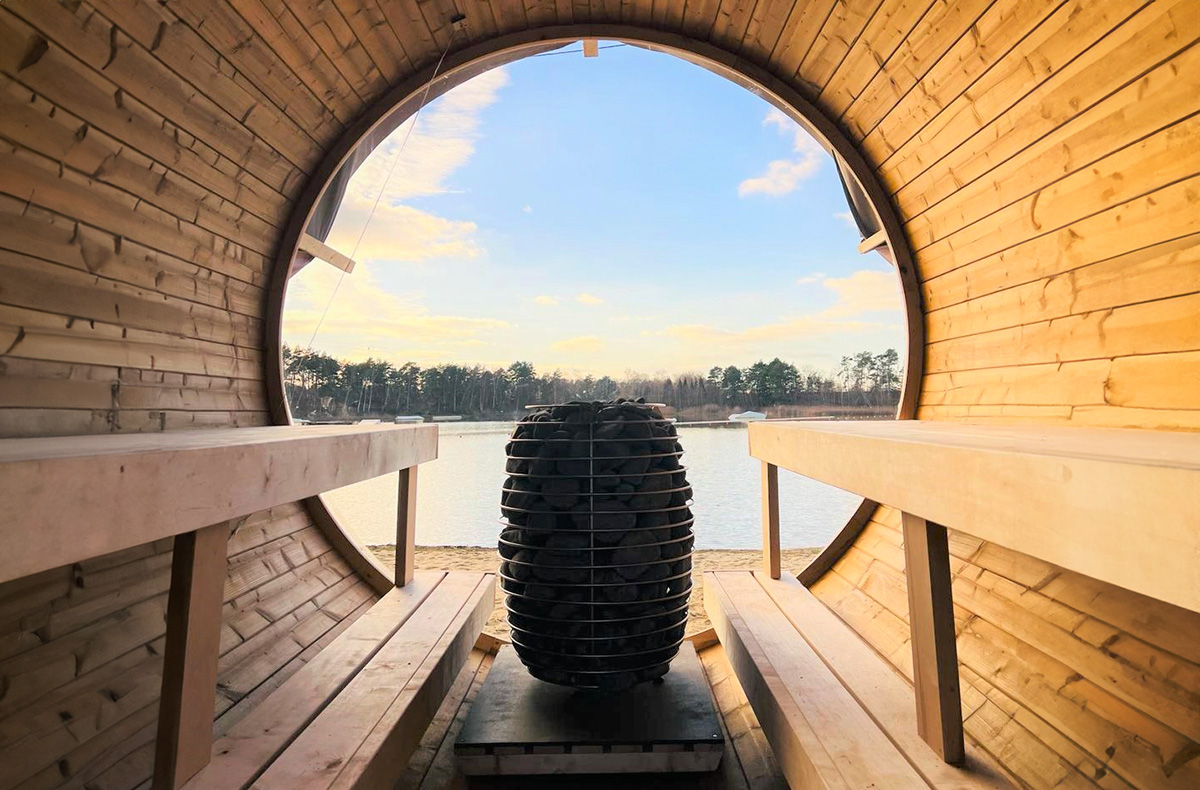…in der exklusiven Panorama-Fasssauna am Strand richtig ins Schwitzen und werdet von der Ruhe der Natur verzaubert. Mit neuer Energie geht es für Euch nun auf eine Nordic Walking Tour durch die Landschaft. Die Stöcke könnt Ihr ausleihen. Am nächsten Morgen startet Ihr mit einem reichhaltigen Frühstück in den Tag. Einfach wunderbar!