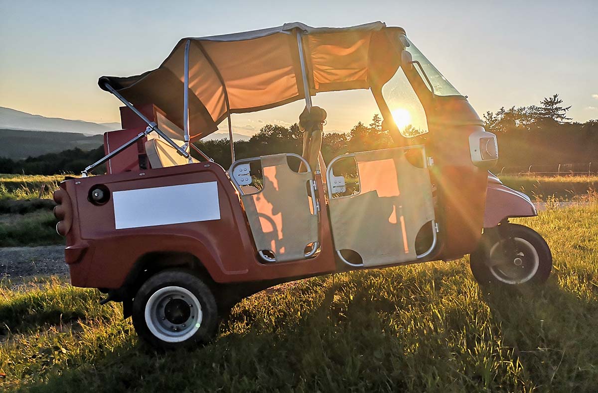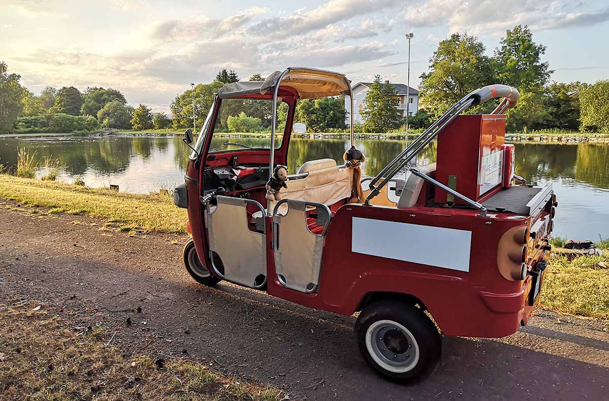 Bei der Ape Tour bei Vollmond in Oberwart (4 Std.) fahrt Ihr gemütlich durch die nächtliche Landschaft des Burgenlands und spürt den besonderen Zauber der stillen Stunden. Das leise Knattern der Piaggio APE Calessino 200 begleitet Euch, während der Mond silberne Lichtspuren über Felder und Hügel legt. Gemeinsam genießt Ihr den nostalgischen Charme des Dreirads und den sanften Fahrtwind, der Euch durch die klare Nacht trägt. Kurze Stopps an der Burg Schlaining und der Burg Lockenhaus schenken Augenblicke voller Ruhe und Geschichte. Diese Ape Fahrt ist ein harmonisches Erlebnis voller Atmosphäre und besonderen Momenten. Lasst Euch von der Magie des Vollmonds tragen und schafft bleibende Erinnerungen.