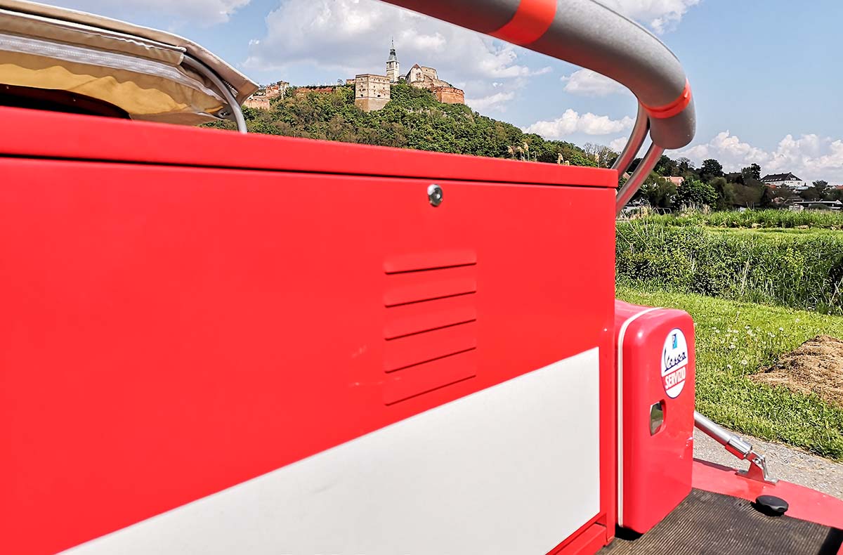 Auf charmante Weise führt Euch die Ape Tour durch die Burg Güssing in Oberwart (3,5 Std.) durch die sanften Hügel des Südburgenlands. In der stilvollen Piaggio APE Calessino 200 genießt Ihr das Gefühl von Freiheit, während die Strecke vom Hannersberg über die majestätische Burg Güssing bis zu den Burgen Schlaining und Lockenhaus führt. Historische Orte, malerische Dörfer und weite Landschaften ziehen gemächlich an Euch vorbei und schaffen eine Atmosphäre voller Ruhe und Authentizität. Der Duft des Sommers, das leise Brummen des Motors und die Nähe zur Natur machen diese Ape Tour zu einem besonderen Moment, der lange in Erinnerung bleibt. Lasst Euch von dieser einzigartigen Fahrt inspirieren und schenkt Euch gemeinsame Zeit voller Eindrücke und Charme.