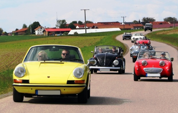 Erlebe zu zweit in einem originalen Oldtimer eine Rallye durch die schöne Voralpenlandschaft Bayerns.