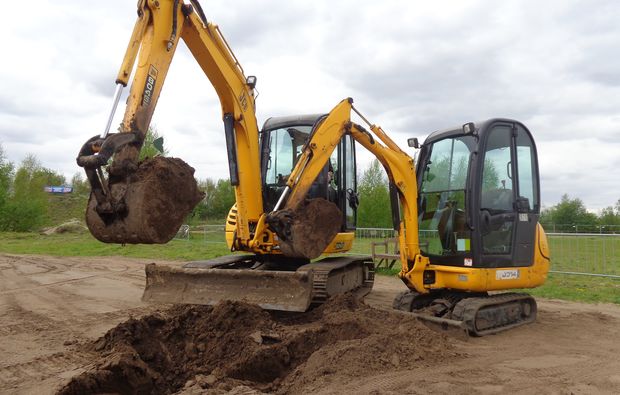 Nach einer kurzen Einweisung versucht sich Dein Kind zunächst auf dem 1,5-Tonnen-Minibagger als Bauarbeiter. Da Kinder ja sehr schnell lernfähig sind, werden sie in kurzer Zeit schon mit den Hebeln umgehen können und die ersten Schaufeln mit Erde füllen. Anschließend geht es auf den größeren 4,5-Tonnen Bagger. Jetzt wir sich Dein Spross schon wie ein richtiger Baumaschinenführer fühlen. Schaufel für Schaufel wird nun das Erdreich umgegraben.