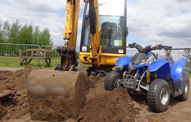 Du kannst Dich nicht entscheiden, ob Du lieber Bagger oder Quad fahren möchten? Dann erlebe doch einfach beides an einem Tag! Bagger Dich ein auf dem Minibagger, starte dann mit dem großen Kettenbagger richtig durch, und tobe Dich dann am Steuer eines Quads nach Herzenslust aus!