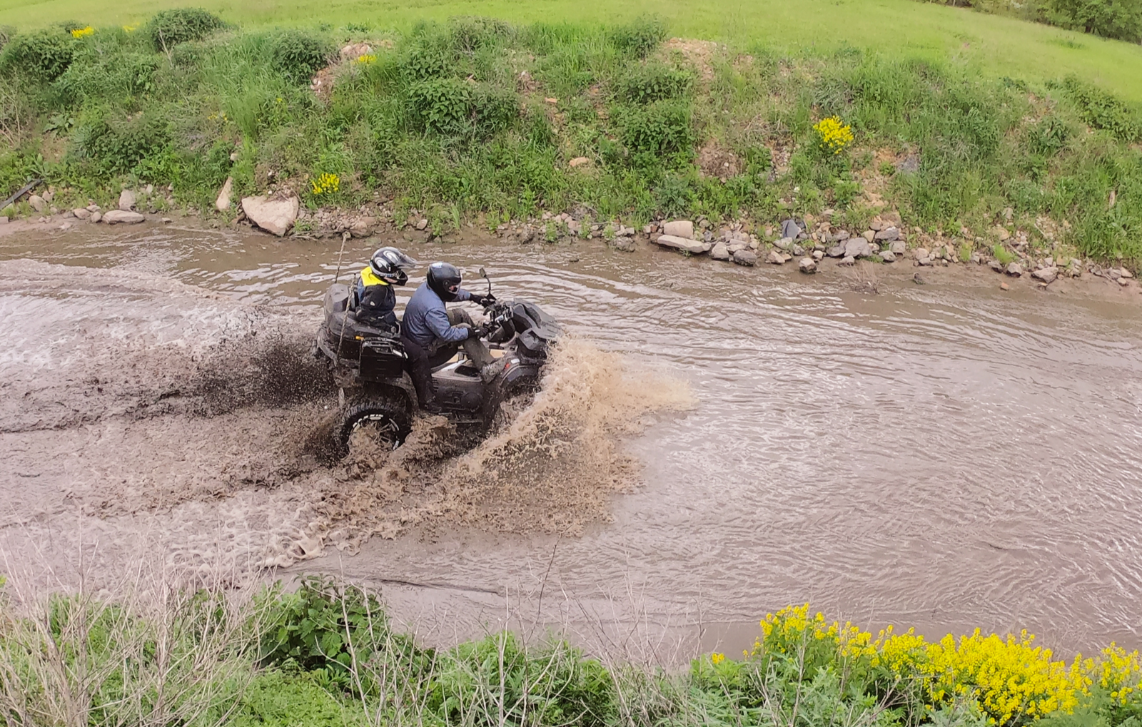 Bei Deiner Ankunft begrüßt Dich der freundliche Quad-Guide. Nach einer kurzen Einführung schwingst Du Dich auf Dein massives Quad. Du lässt den Motor aufbrüllen und schon geht es los! Auf dem Asphalt der Straßen bekommst Du ein Gespür für die besondere Maschine. Die Sonne scheint Dir ins Gesicht, während der Fahrtwind durch Deine Haare streift. Schließlich endet die Straße und Du schlängelst Dich Offroad durch Kies und Erde.