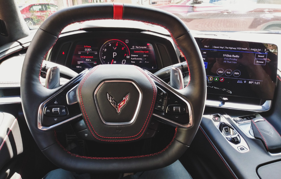 Vor Dir steht ein echtes Prachtstück unter den amerikanischen Sportwagen. Hinter der Corvette C8 stecken unglaubliche 495 Pferdchen, die von Dir herausgefordert werden wollen. Drück auf die Eisen und lasse den Sportwagen über die Fahrbahn schweben. Ein wahrer Genuss für Deine Ohren! Dafür verantwortlich ist der V8-Mittelmotor. Dieser befindet sich hinter den Sportsitzen und stellt sowohl optisch als auch leistungsbezogen ein echtes Highlight dar.