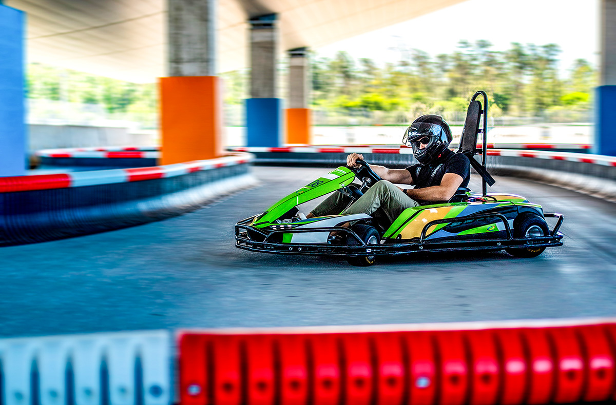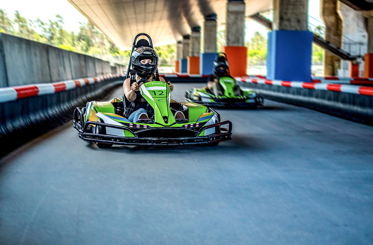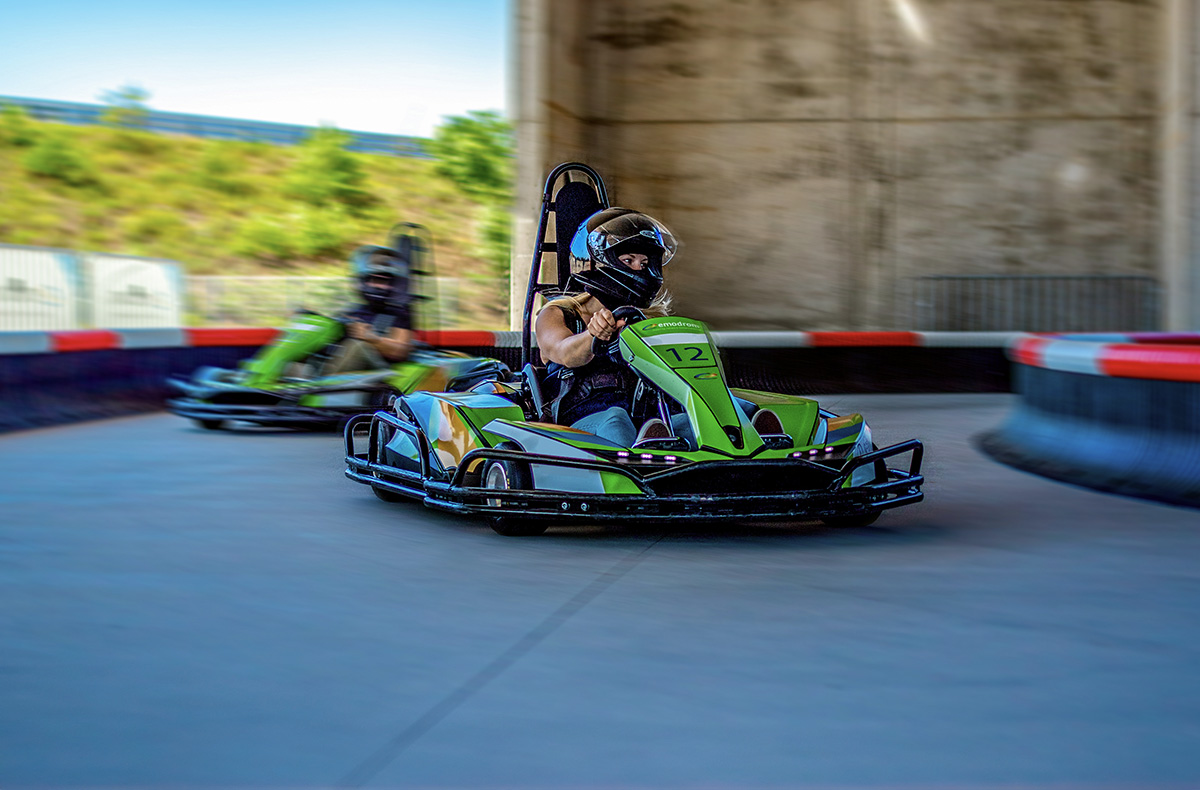 Du sitzt eine Handbreit über dem Boden und spürst, wie Du geradezu über den Asphalt fliegst. Die Beschleunigung durch den E-Antrieb drückt Dich in Deine Sitzschale und Du bist fasziniert von der Geschwindigkeit. Mit quietschenden Reifen nimmst Du die Kurve und gibst dann wieder Vollgas. Natürlich willst Du als Erster die schwarz-weiß karierte Flagge sehen. Mit den hochmodernen E-Karts macht das Fahren gleich doppelt Spaß. Stellst Du einen neuen Streckenrekord auf?