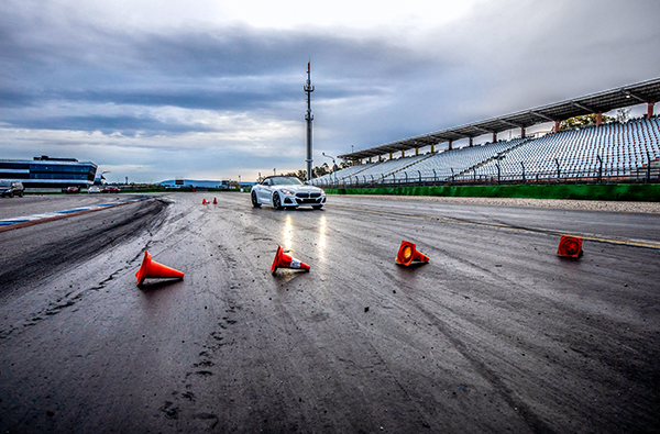 Funkgeräte für die fahrdynamischen Übungen auf der Rennstrecke werden gestellt