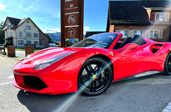 Du am Steuer eines Ferraris 488 Spider mit 670 PS. Das ist heute Realität für Dich. Und wie? Das Ferrari mieten in Au SG lässt Deinen Fahrtraum wahr werden.